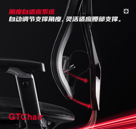 角度自动适应系统 角度自动适应系统,可实现椅背角度的自动适应调节。系统无需任何调节,随人体施压力量的改变。椅背角度灵活调节,自动调节人体所需的支撑角度。装置相互配合,能自动识别使用者的体重、坐姿和使用习惯,在9°范围内为使用者提供全方位的无隙支撑。