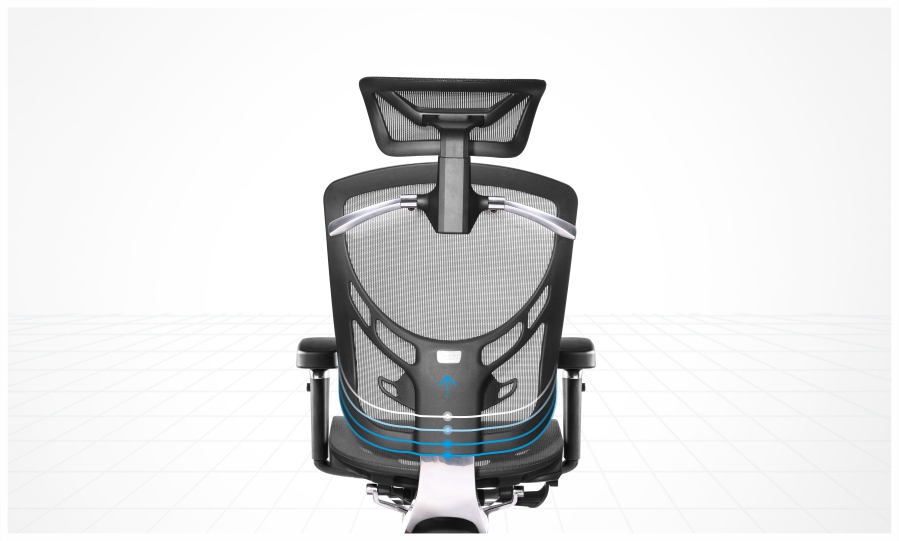 采用高密度海绵包裹式腰垫,高度可在5cm范围内调节,为适应不同身高、不同使用习惯的使用者提供更好的腰椎支撑,减小腰肌劳损,真正实现人体工学支撑。